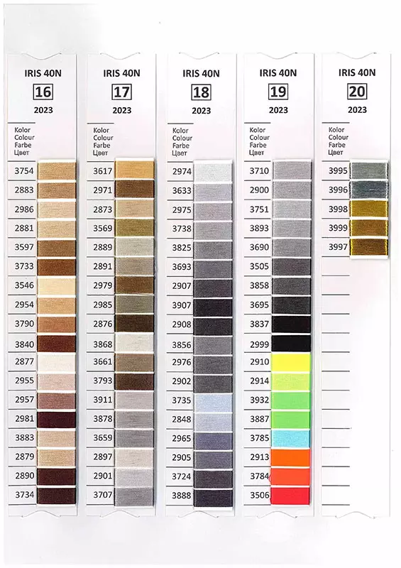 IRIS е специализиран конец за машинна бродерия, произведен от висококачествен мултифиламентен полиестер с висока степен на блясък. Благодарение на най-новите технологии за производство, конците IRIS се отличават с изключителна здравина и устойчивост на цветовете под въздействие на светлина, вода и топлина. Те могат да се използват при всички видове домашни и професионални бродерийни машини.